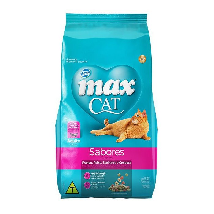 Ração Max Cat Premium Especial Sabores Gatos Adultos Frango, Peixe, Espinafre e Cenoura 20kg - 20kg