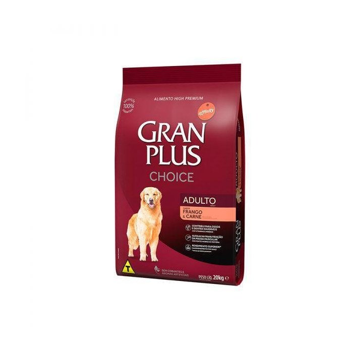 Ração Para Cães Adultos Gran Plus Choice Frango E Carne 20Kg