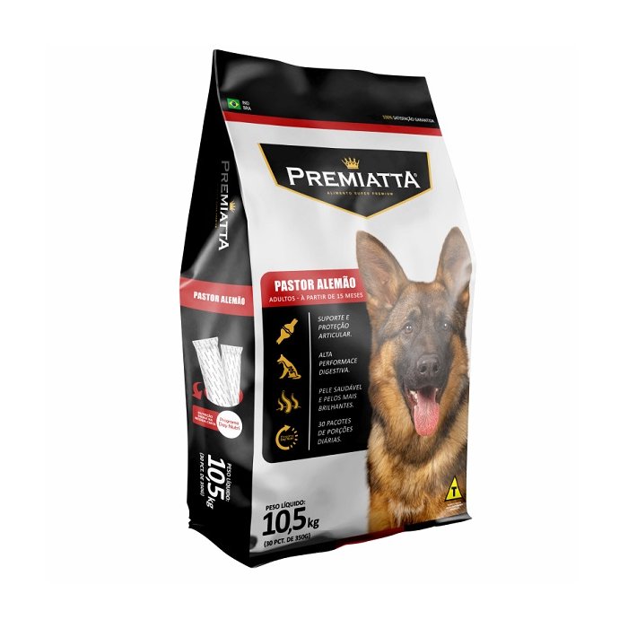 A Ração Premiatta Pastor Alemão é um alimento completo indicado para cachorros adultos da raça Pastor Alemão.