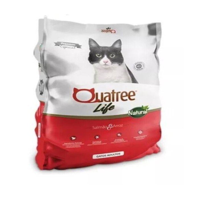 Quatree supreme gatos adultos é um alimento super premium formulado especificamente para atender as exigências de gatos a partir de 12 meses. Os ingredientes nobres em sua composição oferecem uma nutrição completa e saudável, proporcionando mais longevidade. Possui relação proteína/energia própria para fornecer uma alimentação equilibrada. Não contém corantes e aromatizantes artificiais. composição básica do produto farinha de vísceras de frango mín. 22 por cento , farinha de salmão mín. 2 por cento , proteína isolada de suíno, ovo integral desidratado, gordura suína, gordura de frango, semente de linhaça, arroz quebrado mín. 15 por cento , glúten de milho60 1, milho integral 1, farinha de algas dha, polpa de beterraba, inulina fos, levedura de cerveja, celulose, cloreto de sódio, cloreto de potássio, hidrolisado de fígado de frango e suíno, hexametafosfato de sódio, ácido fosfórico, tocoferol, extrato de alecrim, extrato de maçã, extrato de chá verde, glucanos, mananoligossacarídeo mos, extrato de yucca, taurina, metionina, lisina, vitaminas a, d3, e, b1, b2, b6, b12, k3, c, ácido pantotênico, ácido fólico, niacina, biotina, cloreto de colina, minerais sulfato de cobre, sulfato de zinco, sulfato ferroso, monóxido de manganês, iodato de cálcio, selenito de sódio e minerais quelatados manganês, selênio e zinco. 20 Kg