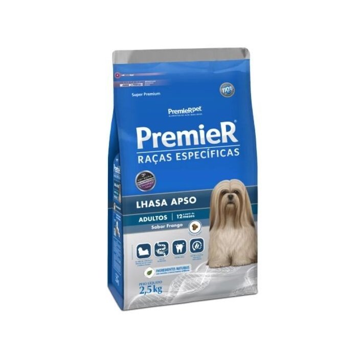 A Premier, referência em produção em alimentos balanceados, fabricados com ingredientes de alta qualidade e com concentração ideal de vitaminas e minerais que seu cão precisa, desenvolveu uma linha especial para cada raça de cão. A Ração para a raça Lhasa Apso é um alimento Super Premium e foi desenvolvido para auxiliar na pele e pelagem do seu cão. Isso é possível por meio dos ácidos graxos essenciais (ômega 3) e a vitamina biotina. Por ser desenvolvida com proteínas de altíssima qualidade e conter alto teor de zinco, essa ração garante pelos macios, sedosos e brilhantes. Indicação: Cães Raça: Lhasa Apso Idade: Adultos Porte: Raças pequenas Marca: Premier Linha: Super Premium Sabor: Frango Tipo de ração: Seca Ingredientes Farinha de vísceras de frango, glúten de trigo, proteína isolada de suíno, ovo desidratado, quirera de arroz, gordura de frango, gordura suína, óleo de peixe, polpa de beterraba, aveia, ácido propiônico, antioxidantes BHA e BHT (0,012%), cloreto de potássio, cloreto de sódio, extrato de yucca (0,06%), hexametafosfato de sódio (0,1%), hidrolisado de suíno e frango, levedura seca de cervejaria, mananoligossacarídeos (0,2%), parede celular de levedura, sulfato de condroitina, sulfato de glicosamina, taurina, vitamina A, vitamina B12, vitamina C, vitamina D3, vitamina E, vitamina K3, ácido fólico, ácido pantotênico, biotina, cloreto de colina, niacina, piridoxina, riboflavina, tiamina, cobre aminoácido quelato, ferro aminoácido quelato, iodeto de potássio, manganês aminoácido quelato, proteinato de selênio, sulfato de cobre, sulfato de ferro, sulfato de manganês, sulfato de zinco, zinco aminoácido quelato. Apresentação: Pacote 2,5kg