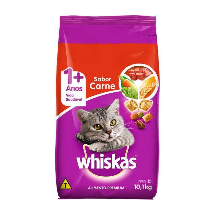 Ração Whiskas Carne para Gatos Adultos - Receita sem corantes artificiais; - Com Vitamina A para saúde da visão do seu gatinho; - Com Taurina, vitaminas e minerais para os melhores cuidados; - Ração Premium 100% completa e balanceada para gatos adultos; - Minerais controlados para ajudar a manter um trato urinário saudável; - Ômega 6 e Zinco para ajudar a manter pele e pelo do seu gato saudáveis. O alimento para gatos WHISKAS® é nutricionalmente completo e balanceado, com um ótimo equilíbrio de vitaminas e minerais para ajudá-lo a fornecer os melhores cuidados para o seu gato adulto. As necessidades nutricionais do seu gato mudam ao longo do tempo. É por isso que a Ração Whiskas Carne para Gatos Adultos é especialmente desenvolvida para gatos curiosos proporcionando a eles todos os nutrientes e energia necessários para explorar o mundo. WHISKAS®, ALIMENTE A CURIOSIDADE.
