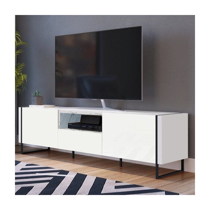 Rack 2 Portas 1 Gaveta vesta para TV até 60 Polegadas Artesano Thassos/Branco/Preto