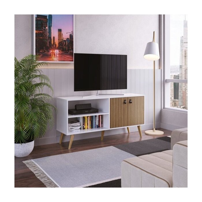 O Rack Amber da Linha Wood da Genialflex, possui estrutura completa para deixar sua sala de estar bem organizada. Além dos compartimentos internos, você também tem disponível o tampo amplo, e, juntos, eles vão acomodar os eletrônicos e aqueles outros objetos essenciais à rotina, sejam decorativos ou não. Enquanto isso, o visual vai potencializar o bom gosto desse cômodo, além de facilitar muito na hora de combiná-lo com o sofá, mesinha lateral e demais itens que você gosta de usar para deixar o centro de entretenimento mais aconchegante e com seu toque pessoal. Possui as portas com BP ripado e puxadores em couro, que dão um toque sofisticado e elegante a sua sala.