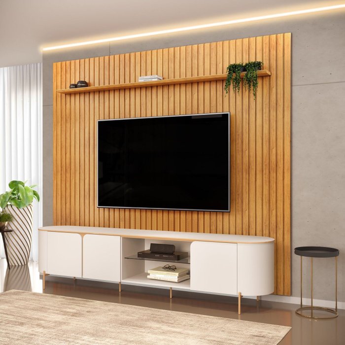 Rack Ariana Tampo Curvo com Painel Ripado para TV até 75 Polegadas Trento