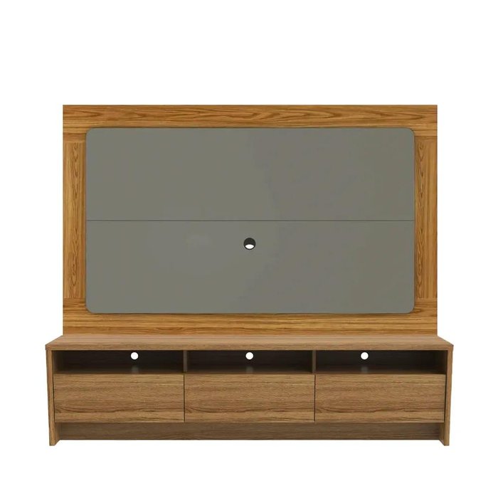 Rack Aspen com Painel Oslo para Tv até 75” 3 Portas 217 Cm - Freijó C/ Grigio Gloss