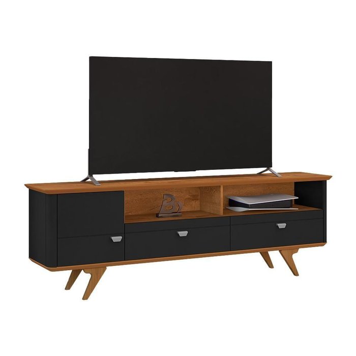 Rack Atenas para Tv até 70 Polegadas Pés em Madeira Maciça Preto Fosco/naturale Preto Fosco/
