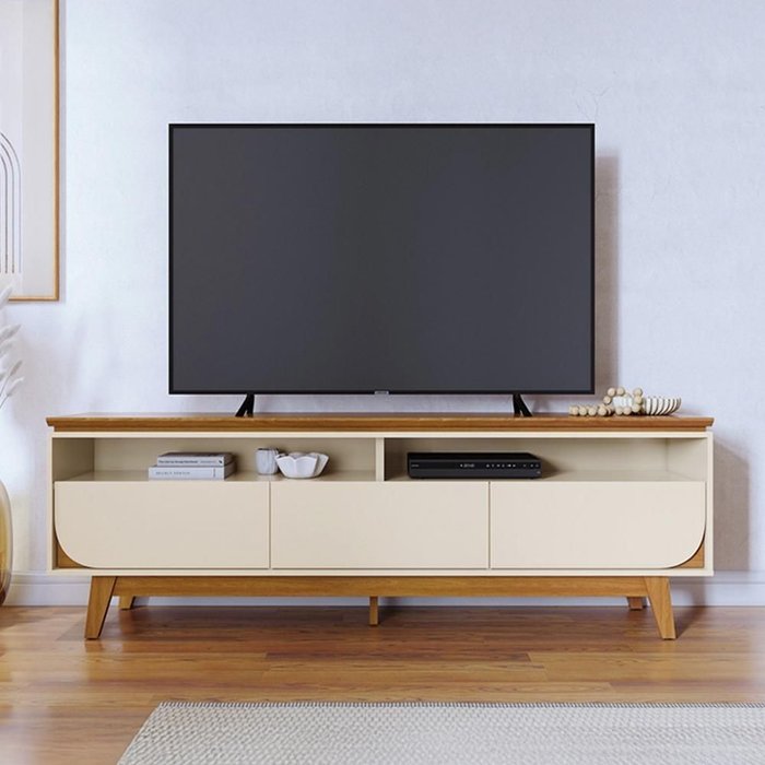 Rack Bancada 3 Gavetas Tvs até 75 Polegadas Selene - Cinamomo/off White