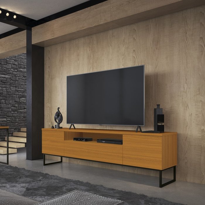 Rack Bancada Austin Para Tv Ate 75'' Pes em Metal 2 Portas Cedro EDN Moveis
