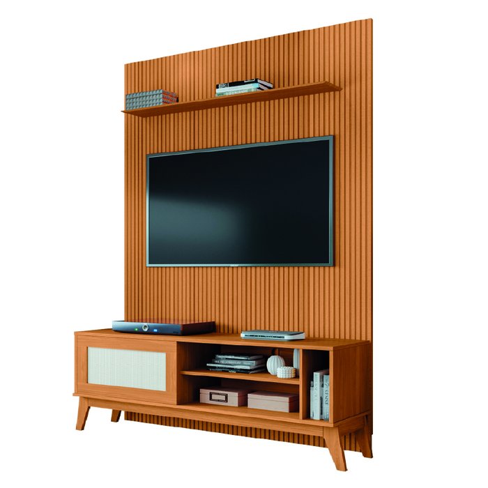 Rack Bancada Caribe com Painel para Tv até 55 Polegadas 1,35m Egeo Cedro Ripado Impressão 3d Edn