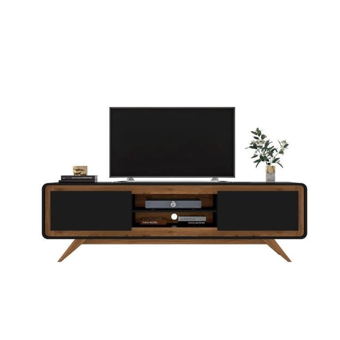 Rack / Bancada Chan 1.50m para Tv até 55'' Estilo Retrô 100% Mdf com Pés em Madeira 2 Portas Bascula