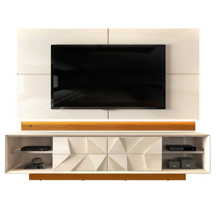 Rack Bancada com Painel Tv até 75 Pol. Gavetas 3d Pirâmide Colone Creme/cinamomo Mel - Dj Móveis