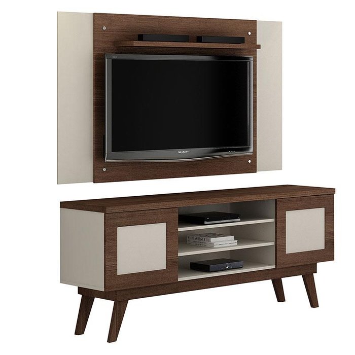 Rack Bancada Detroit e Painel para Tv América Chocolate Off White – Valdemóveis