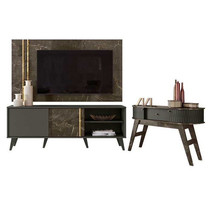 Rack Bancada e Painel para TV Cronos com Aparador Estoril Jade Oliva – Madetec