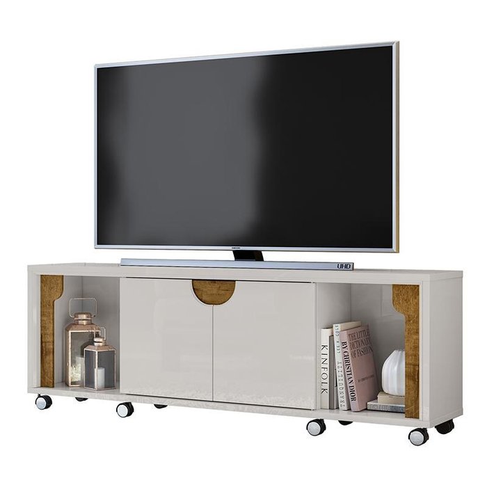 Rack Bancada Firenze para TV até 65” Off White/Madero Canela - PR Móveis