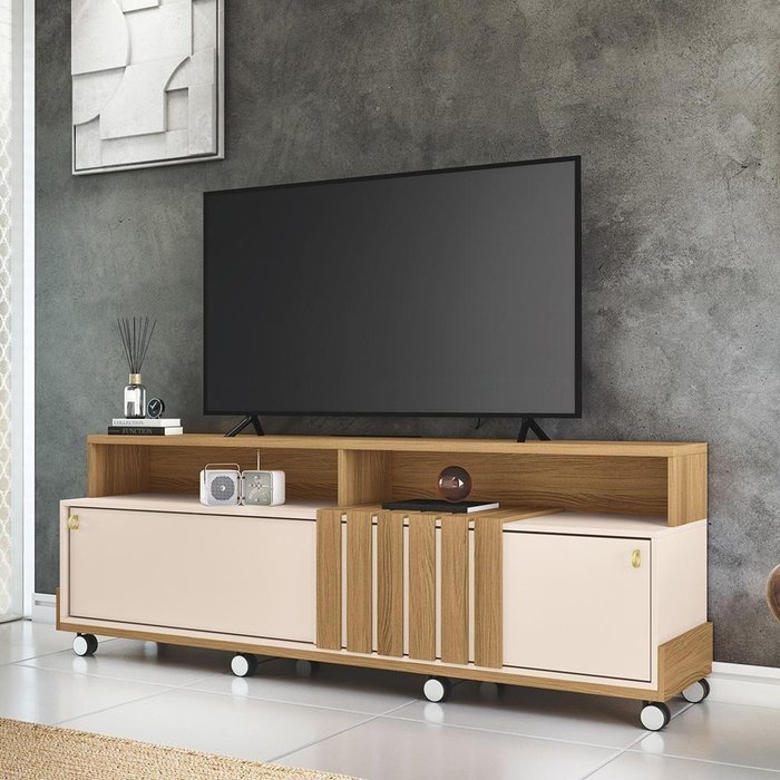 Rack Bancada Graci para Tv até 70 Polegadas com Rodizios Freijo/off White