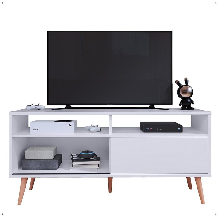 Rack Bancada Home Estante Tv Smart 55 Polegadas Retrô Porta Nicho Sala Quarto Pequeno Branco - Rpm