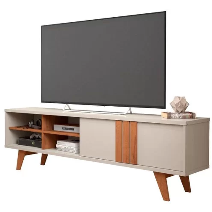 Rack Bancada Paraty Off White-Savana com pés estilo retrô de madeira maciça - 100% MDF