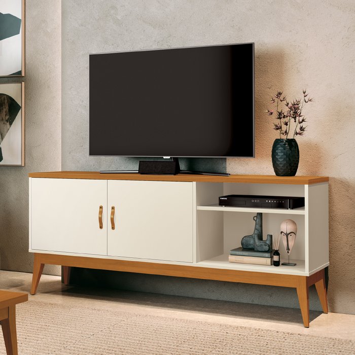 Rack Bancada para Sala Tv até 60 Polegadas Star Cedro/off White Cedro / Off White