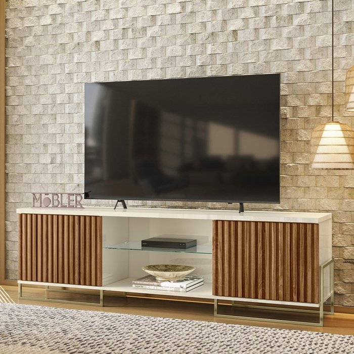 Rack Bancada Para TV até 75 Polegadas 02 Portas Melissa 180cm Cinamomo Mell Off White Bymóveis