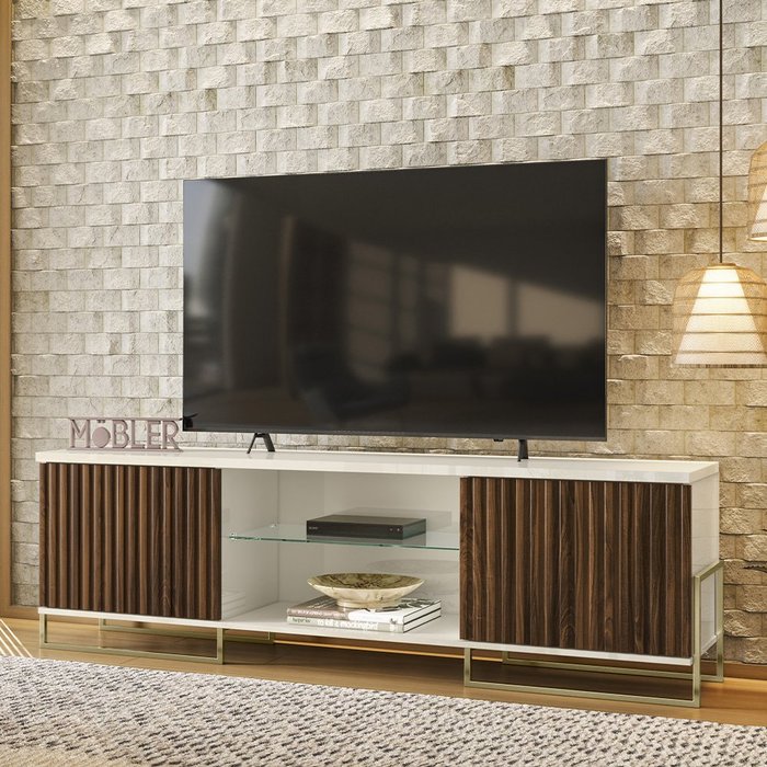 Rack Bancada Para TV até 75 Polegadas 02 Portas Melissa 180cm Palisandro Off White Bymóveis