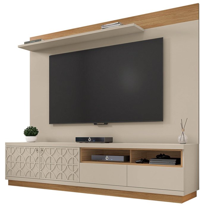 Rack Bancada Renda com Painel Malha para Tv até 75 Pol. Buriti/off White - Caemmun