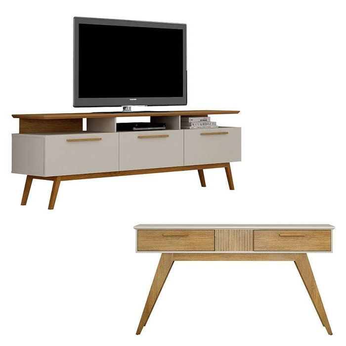 Rack Bancada São Paulo e Aparador Lívia Off White Cinamomo - Valdemóveis