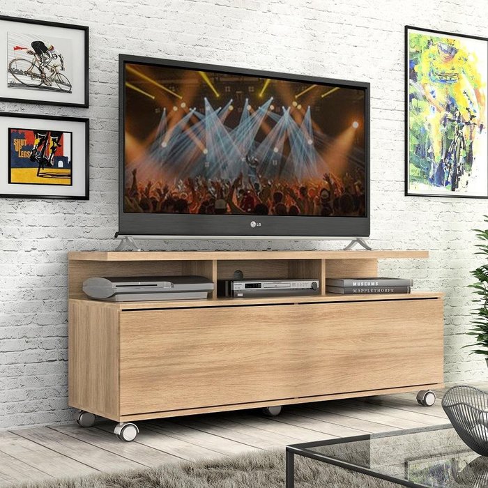 RACK BUZIOS | Esse belo móvel vai combinar com sua casa. O Rack conta com 5 rodízios para melhor movimentação e não empenamento da base, sendo os 2 da frente cromados. Além disso a sua porta é aberta através de um sistema de feixo click e possui um pistão a gás para suavizar o movimento de abertura, possui furos passa-fios estrategicamente colocados. O móvel é feito com um Tampo em MDP de 25mm dando mais robustez e beleza ao produto. O Rack Buzios 1,20m é perfeito para deixar seu cômodo mais sofisticado e com um design moderno. Tem capacidade de suportar até 20kg entre objetos e aparelhos sobre o mesmo e, além disso, possui amplo espaço interno e é de fácil montagem.