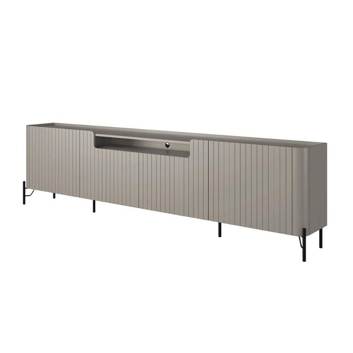 Rack com 4 Portas Brise para Sala 220cm Pés Metal 100% Mdf Grígio/Preto
