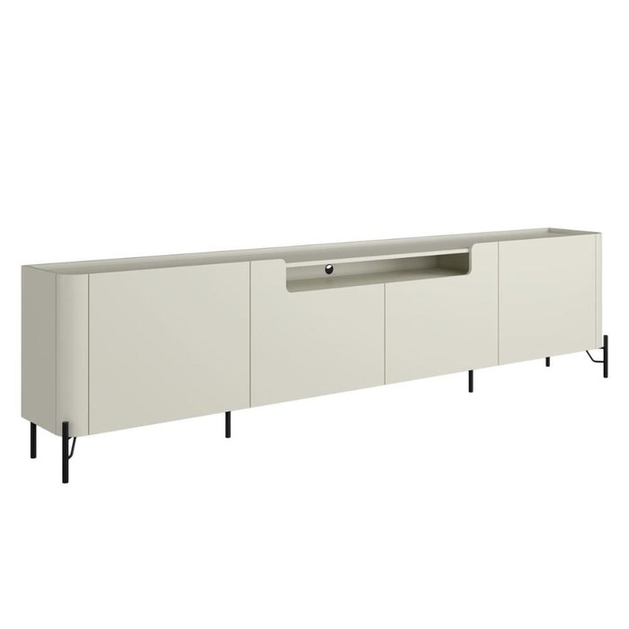 Rack com 4 Portas Lisas 220cm para Sala 100% Mdf Pés Metal Luna/Preto
