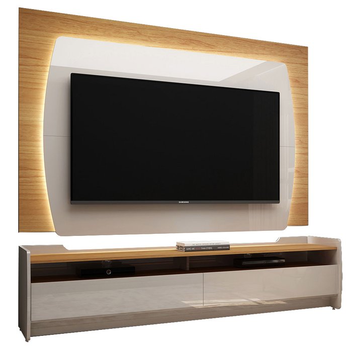 Rack com Painel 1.8 Sublime Off White com Naturale - Gelius Móveis