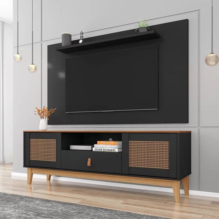 Rack com Painel de Tv 50 Polegadas Esmeralda Preto Cedro Casa D