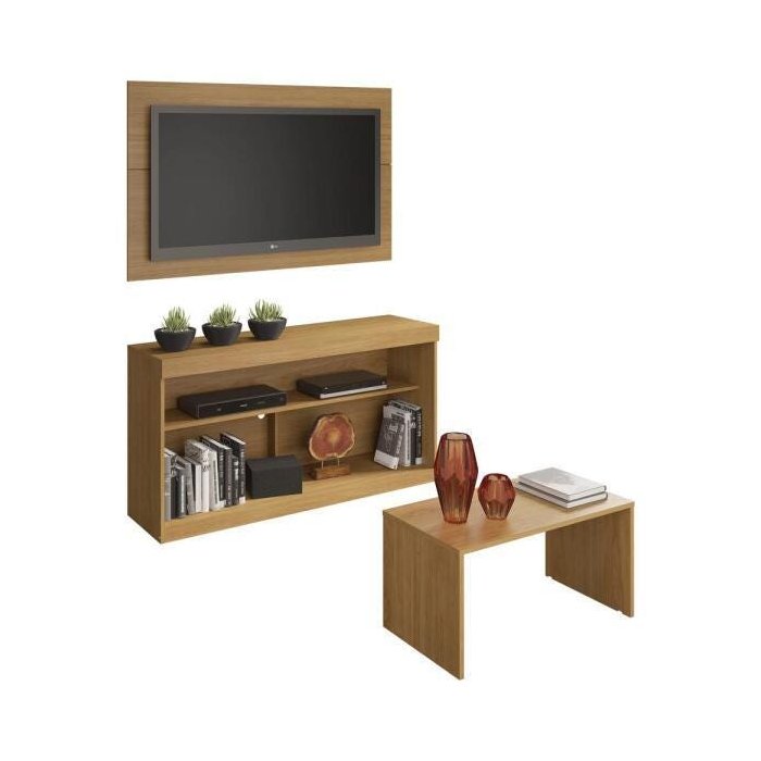 Produzido em MDP com pintura UV, que garante maior durabilidade e facilidade na limpeza, o combo inclui painel P/TV, rack e mesa de centro. O painel P/TV de até 55” possui espaçamento para passagem dos fios, que permite deixar os cabos mais organizados. Devido as variações de tamanho dos televisores no mercado, sugerimos que verifique as medidas da sua TV e compare com o painel antes de efetuar a compra. O rack com espaço para os equipamentos eletrônicos e itens decorativos e a mesa de centro completam a sala de estar de maneira elegante e como uma ótima opção para organizar o ambiente, deixando-o confortável e bonito para você receber as visitas e curtir bons momentos.