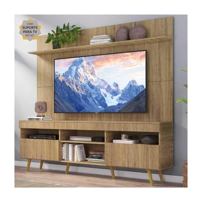 Rack com Painel e Suporte para TV até 65 Polegadas Madri Multimóveis Rustic com Prateleira e Pés Ret