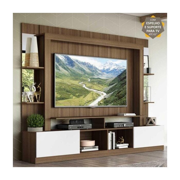 Rack com Painel e Suporte para TV até 65 Polegadas Prateleiras com Espelho Oslo Multimóveis Madeirad