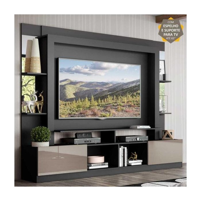 Ver imagem 1 de Rack com Painel e Suporte para TV até 65 Polegadas Prateleiras com Espelho Oslo Multimóveis Preto/La