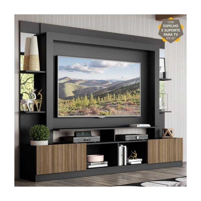 O Rack com Painel e Suporte TV 65" Prateleiras com Espelho Oslo Multimóveis é perfeito para você deixar seu ambiente organizado e muito bem decorado. Produzido em MDP, que garante maior durabilidade e facilidade na limpeza, além de um acabamento superior, possui 2 portas articuladas com um excelente espaço interno para organizar seus pertences, prateleiras com detalhes em espelho para que você possa personalizar a decoração e nichos para acomodar todos os equipamentos. O painel com suporte para TV de até 65” (suporta até 30kg) possui espaçamento para passagem dos fios, que permite deixar os cabos mais organizados. Os espelhos são de vidro (o que evita que a imagem fique distorcida) e lapidados, ou seja, passam por um processo para que as bordas não fiquem cortantes, o que garante maior segurança. Para facilitar a sua vida, este produto acompanha também o kit para fixação da TV. Muito prático e de fácil instalação, pode ser utilizado para TV’s LCD, LED e plasma de 14” a 71”. Totalmente sobreposto, acompanha gabarito de montagem que auxilia na instalação. Conta com um sistema de encaixe rápido, possui 16mm de deslocamento que permite o ajuste do encaixe das peças.