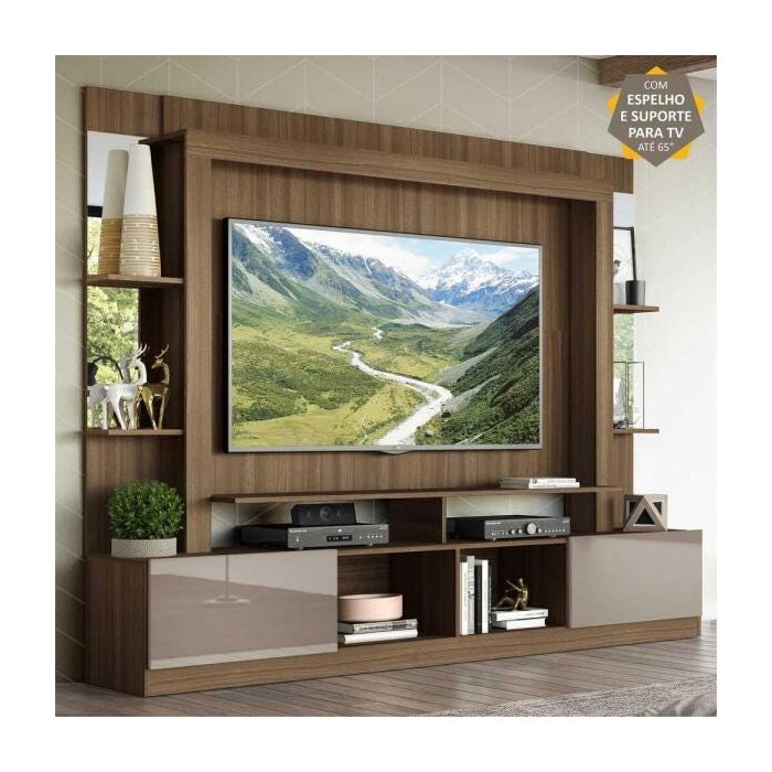 Rack com Painel e Suporte TV 65 Polegadas Prateleiras com Espelho Oslo Multimóveis Madeirado/Lacca F