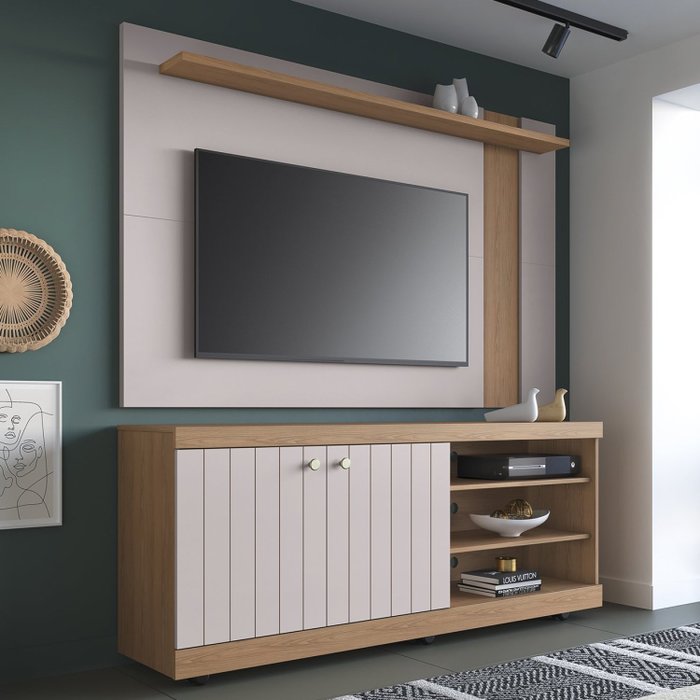 Rack com Painel Extensível para TV até 70 Polegadas 2 Portas 3 Nichos 1 Prateleira Colibri Freijó/Off White