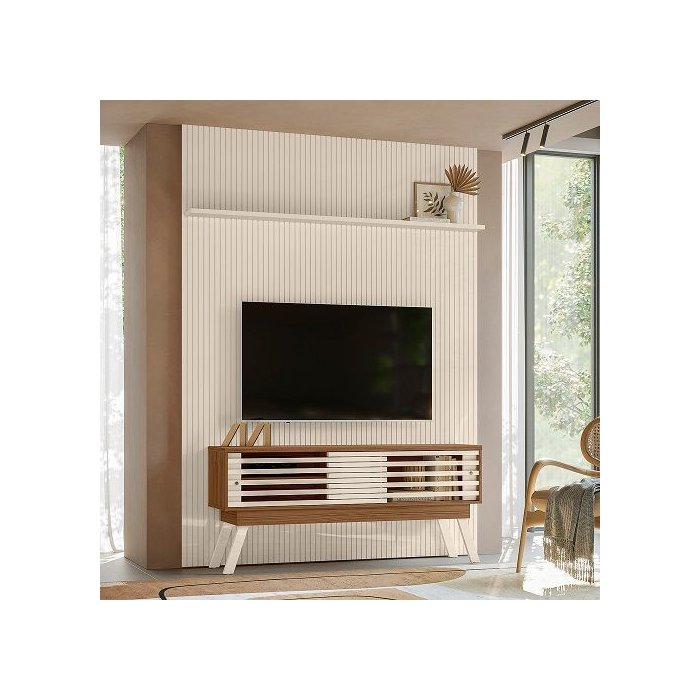 Rack com Painel Frizz New Premium Natualle/off White - Madetec Móveis