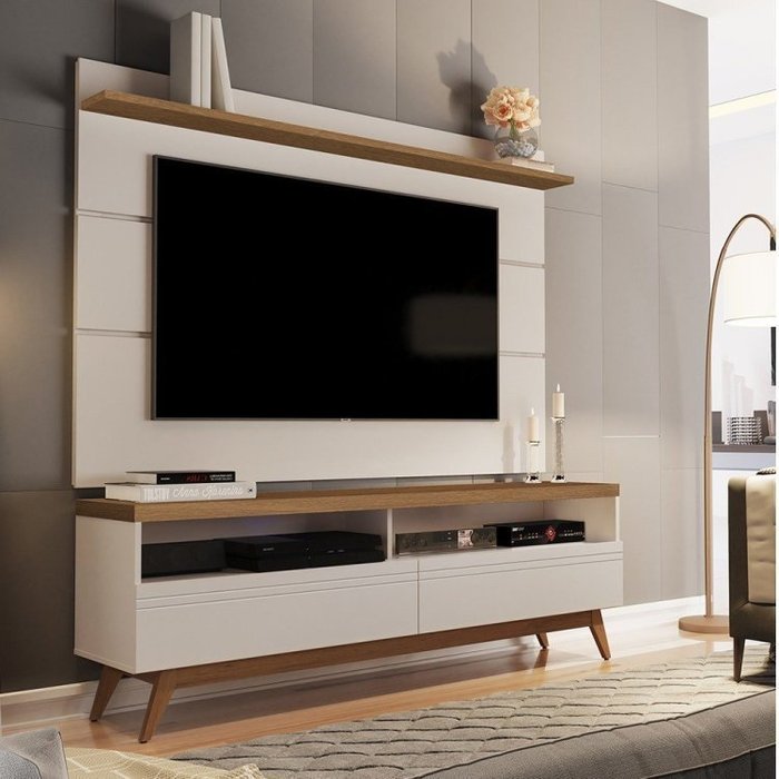 Rack com Painel Munique Vivare para TV até 60 Polegadas 160cm Yescasa Off White/Freijó