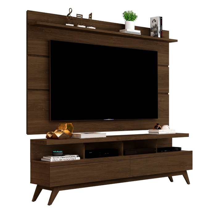 Feito para você que quer transformar a decoração do seu ambiente com muita praticidade e espaço para a TV e todos os aparelhos eletrônicos, o Rack com Painel Vivare Wood é perfeito para sua sala e tem todos os espaços para você guardar os itens do dia a dia para manter o ambiente sempre organizado. Ele possui 2 amplas gavetas com corrediças telescópicas, 4 nichos para aparelhos eletrônicos e 2 prateleiras para expor suas peças decorativas e porta-retratos. Fabricado em MDF/MDP o que garante a firmeza e estabilidade e a pintura com textura amadeirada e em brilho dá o acabamento perfeito e faz com que o móvel tenha aspecto de novo por muito mais tempo.