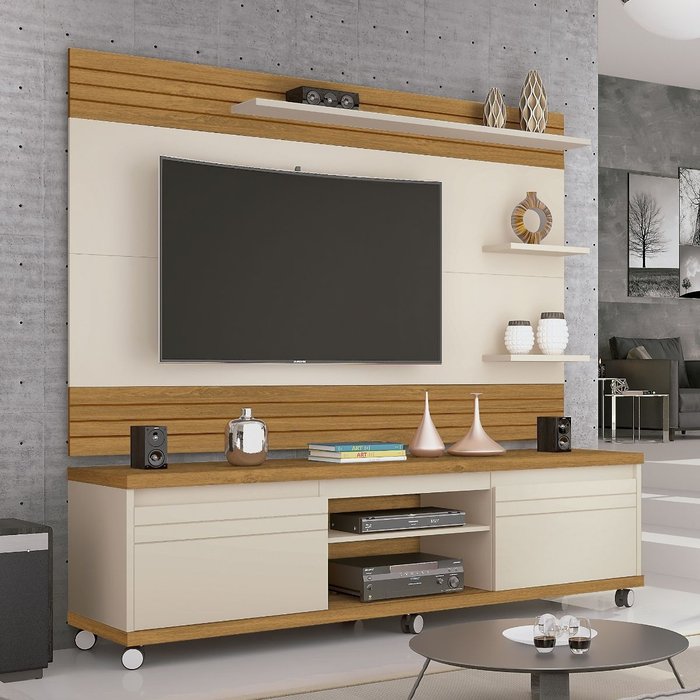 Rack com Painel para Sala Televisão até 50 Polegadas - Mod.2033 Cumaru/Off White