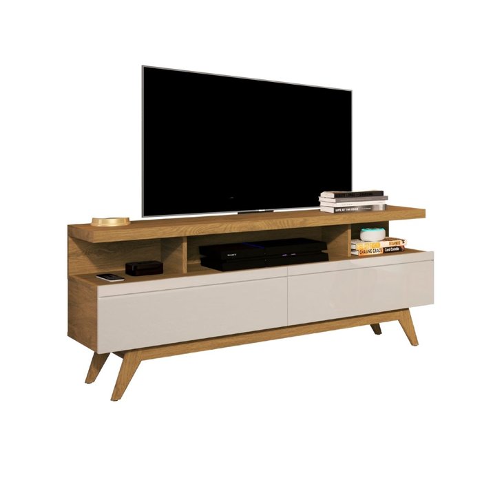 Com capacidade para TV até 50 Polegadas, o rack conta com duas gavetas com corrediças telescópicas e três nichos que tem um ótimo espaço. Assim, há espaço de sobra para a disposição dos itens decorativos e equipamentos.