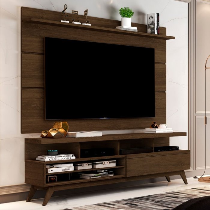 O Rack Sala com Painel Mod. 2045 possui design com linhas retas que trazem mais modernidade e beleza ao seu ambiente. É uma grande escolha para a sala de estar ou para o quarto.