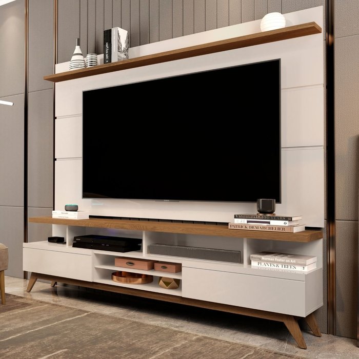 Rack com Painel para Sala Televisão até 65 Polegadas - Mod.2044 Off White/Freijó