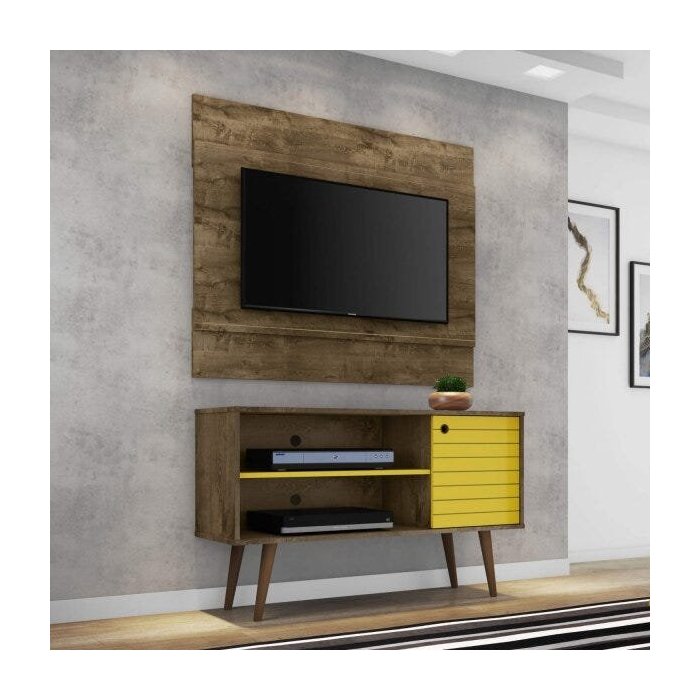 Rack com Painel para TV até 42 Polegadas Jade Espresso Móveis Madeira Rústica/Amarelo