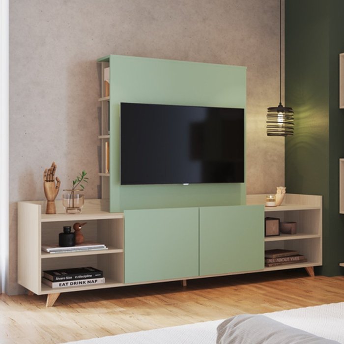Rack com Painel para TV até 46 Polegadas e Estante com Nichos Aurora Nature / Verde