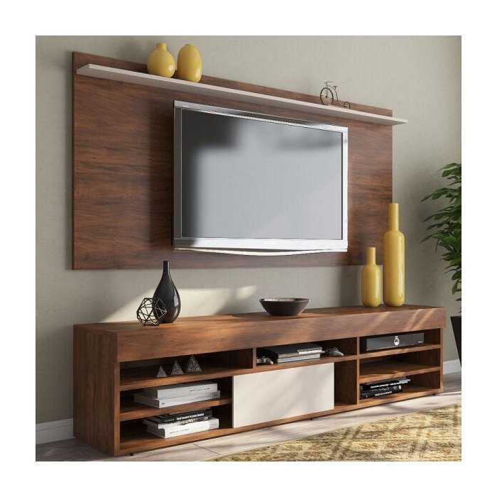 Rack com Painel para TV até 55 Polegadas 1 Porta Jhon Seda/Off White - Viero Móveis Marrom