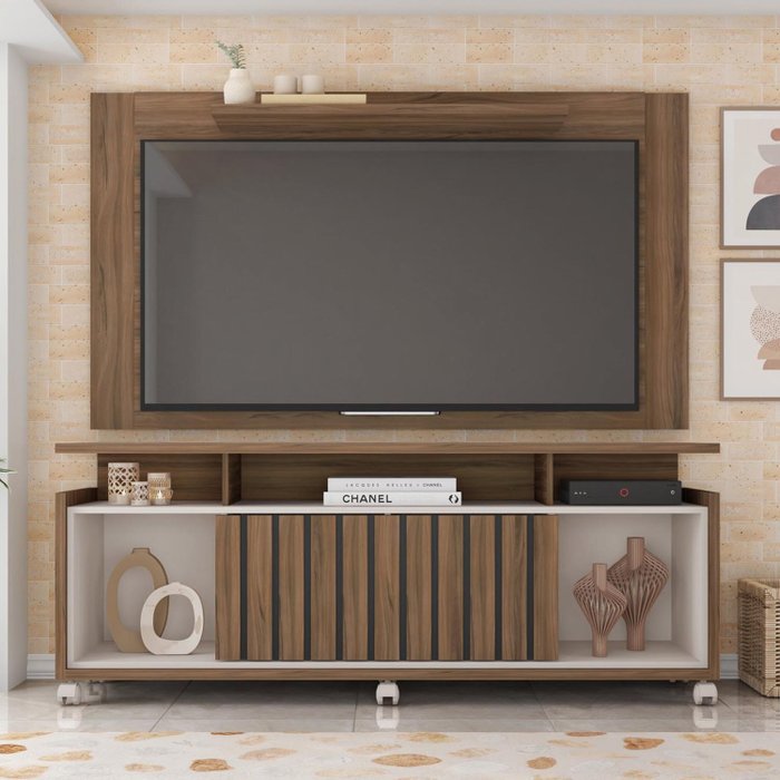 Rack com Painel para Tv até 55 Polegadas Fortaleza Nogueira San Remo/Off White